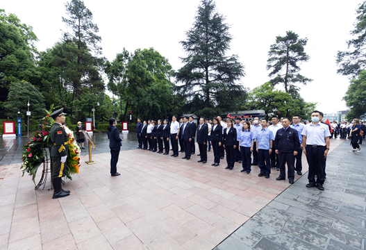 隨后培訓(xùn)班一行人來(lái)到坐落于小龍山上的遵義烈士陵園。莊嚴(yán)的紀(jì)念碑前,集團(tuán)公司黨委書記、董事長(zhǎng)陳先瑞帶領(lǐng)大家在蒙蒙細(xì)雨中敬獻(xiàn)花圈,默哀致敬,重溫入黨誓詞,深切表達(dá)對(duì)英烈的緬懷之情和崇高敬意。